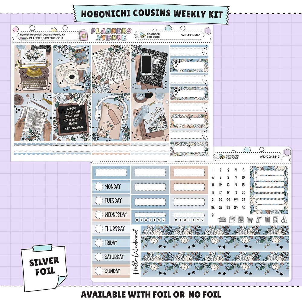 Bookish Hobonichi Cousins Weekly Sticker Foiled Kit (SILVER FOIL) - NO Foil -- Made To Order will ship when stock available