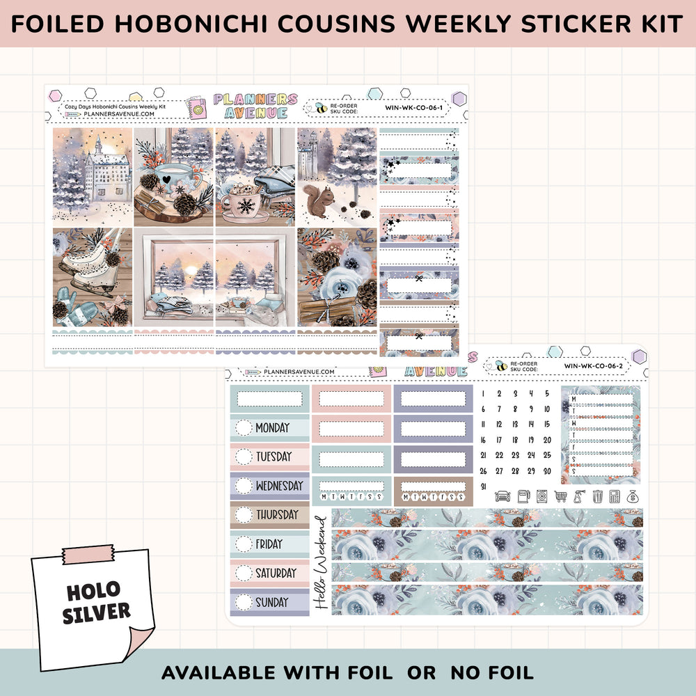 Cozy Days Hobonichi Cousins Weekly Sticker Foiled Kit (HOLO SILVER FOIL) - NO Foil -- Made To Order will ship when stock available