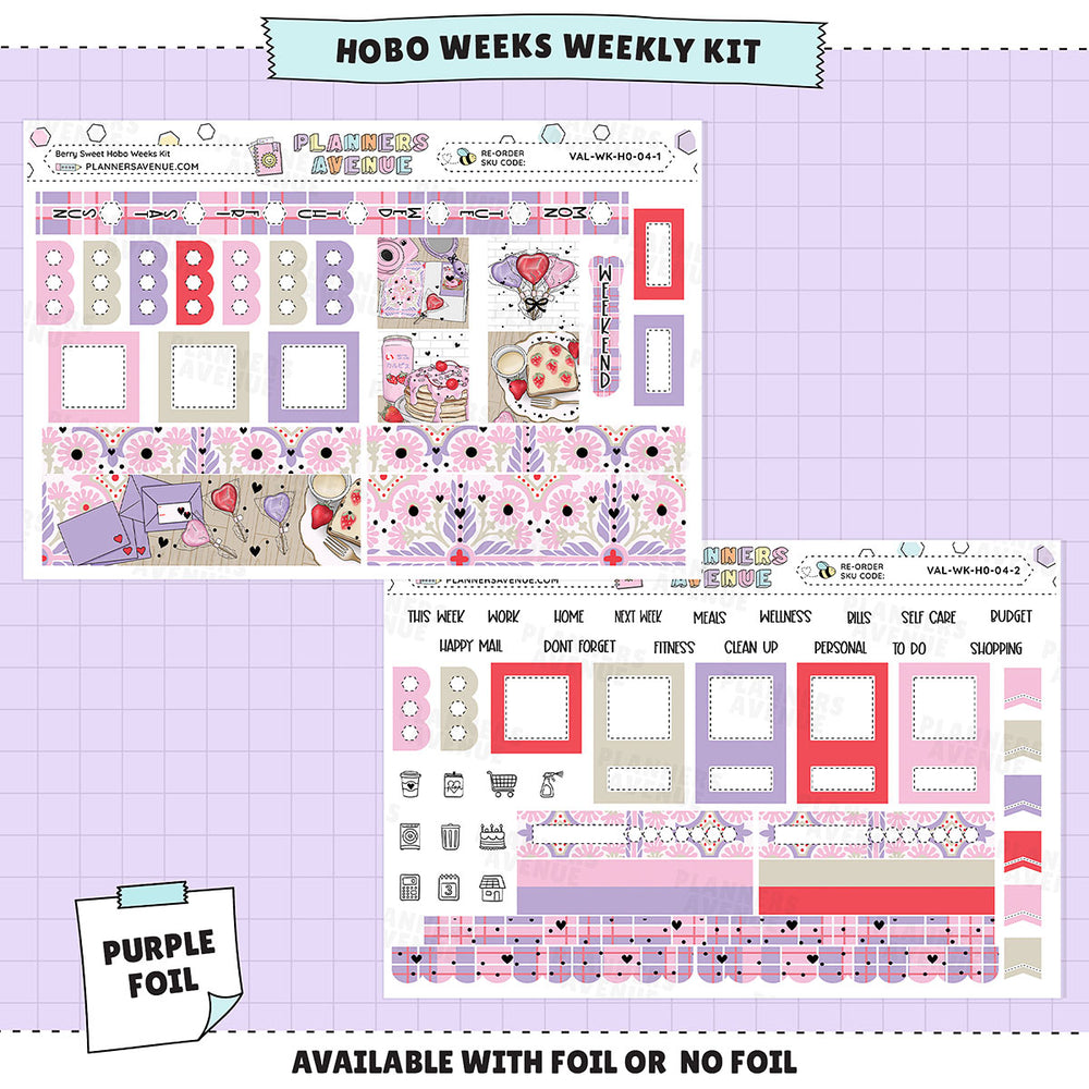 Berry Sweet Hobonichi Weeks Sticker Foiled Kit (PURPLE FOIL) - NO Foil -- Made To Order will ship when stock available
