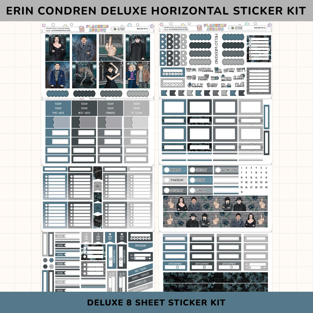 Macabre Manor Horizontal Weekly Sticker Kit is perfect for decorating the weekly view in your Erin Condren horizontal planner or similar planner size.