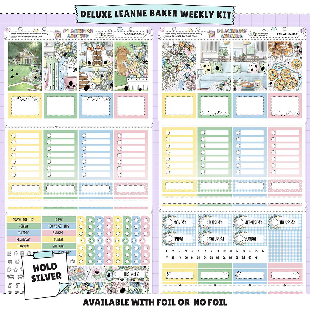 Sugar Bunny Leanne Baker Weekly Sticker Foiled Kit (HOLO SILVER FOIL) - LBD Weekly Kit / NO Foil -- Made To Order will ship when stock available