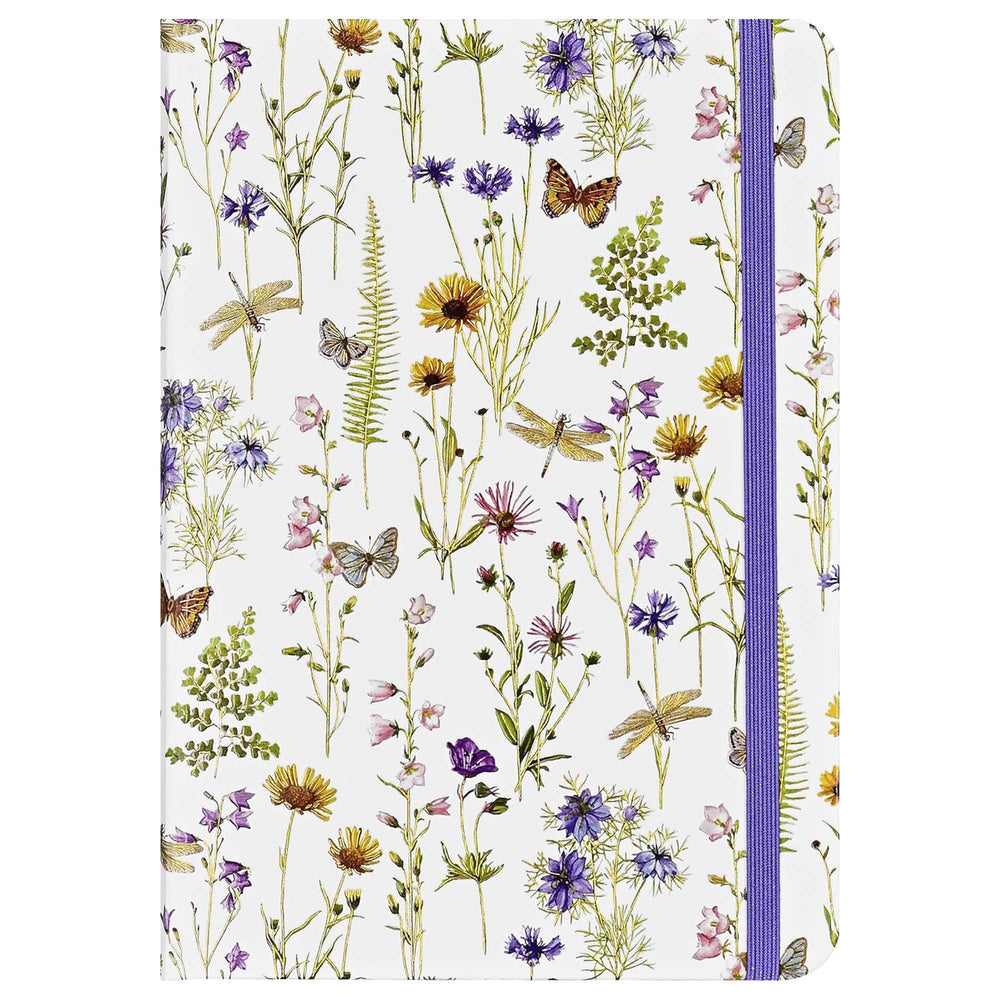Softly-hued butterflies, dragonflies, ferns, and flowers are combined with shimmering gold foil embellishments on the covers of this lovely small-format Wildflower Garden Journal Notebook. Raised embossing lends texture; gloss highlights add polish.