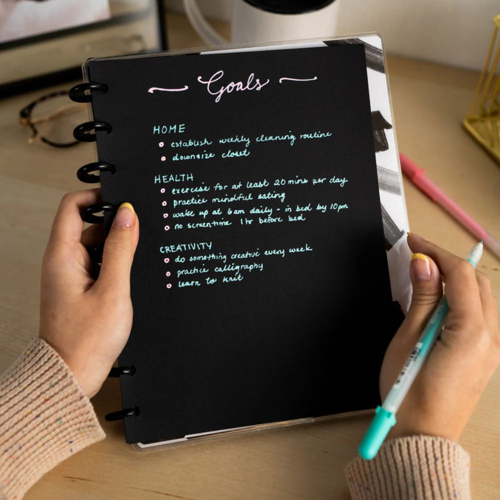 Use our Happy Planner Black Pages Classic Notebook with your favourite speciality markers and gel pens to create your layouts, lists, doodles, and more.