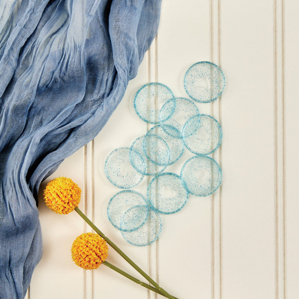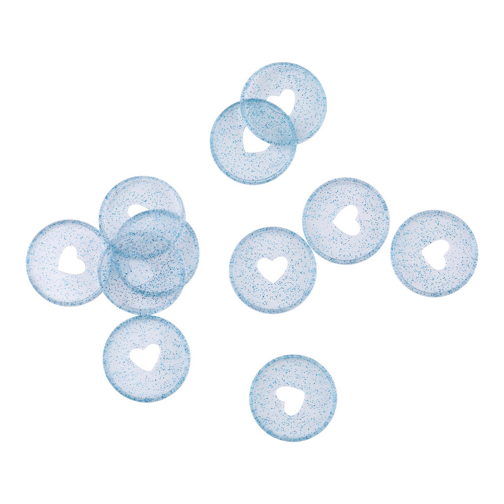 Add these medium-sized blue glitter plastic discs to your Happy Planner collection.