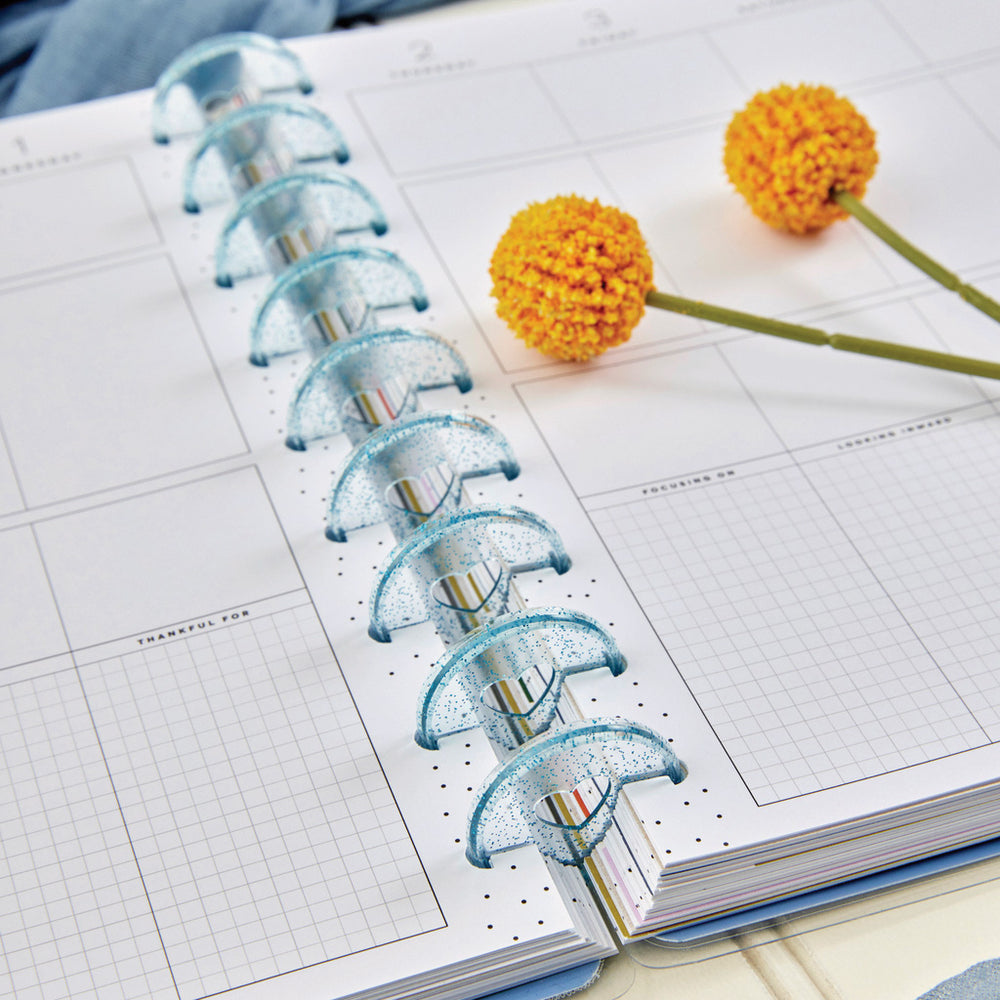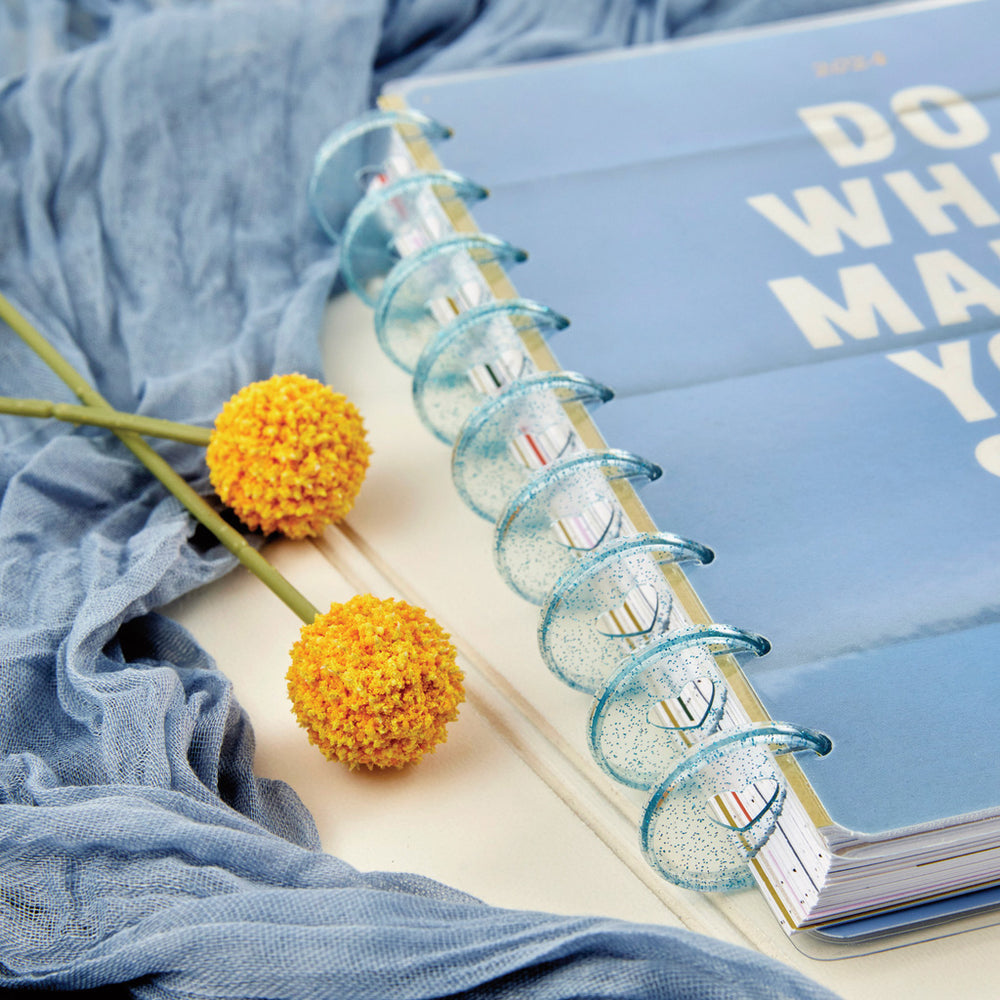 Easily customize your planner with these Happy Planner Blue Glitter Medium Plastic Discs. Can be used with any size Happy Planner, disc notebook, or guided journal.