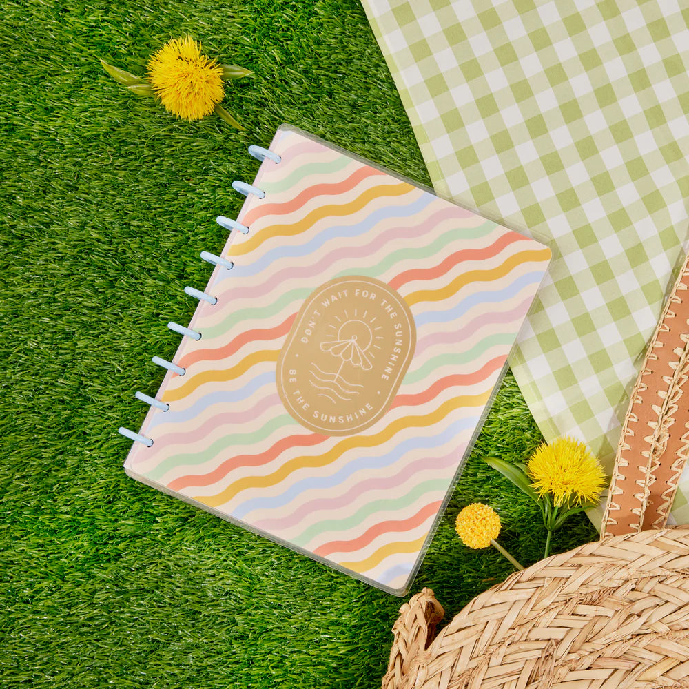 Don't wait for the sunshine, be the sunshine writing within Happy Planner Boardwalk Ice Cream Classic Notebook - Lined pages.