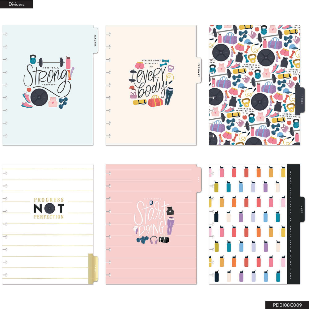 - 12 dividers labelled for each month feature inspirational quotes and cute fitness illustrations.
