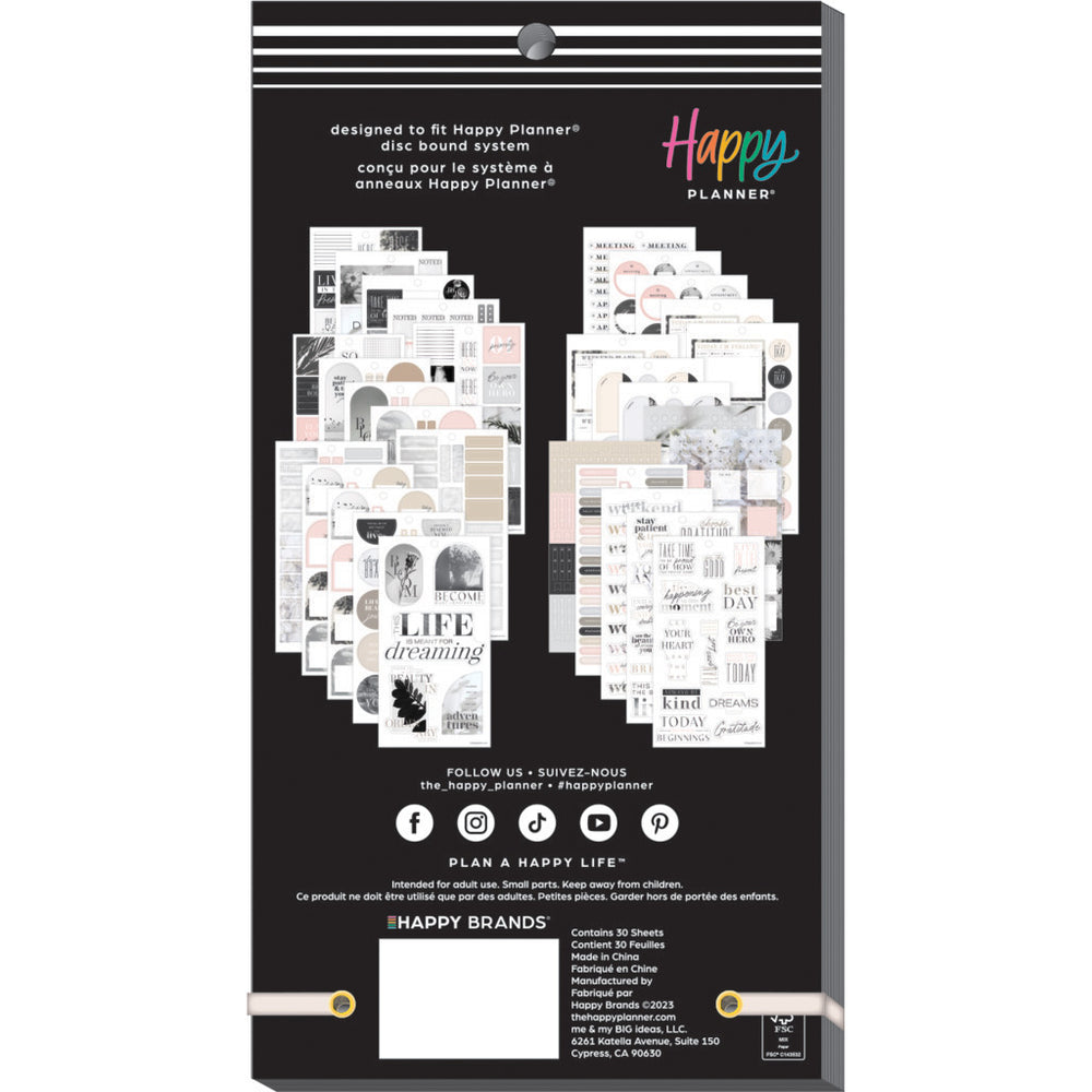 Happy Planner Ink Arbor Classic Sticker Book features a monochromatic colour palette and a sleek design. Remember meetings, and appointments, and make lists with these functional planning stickers.