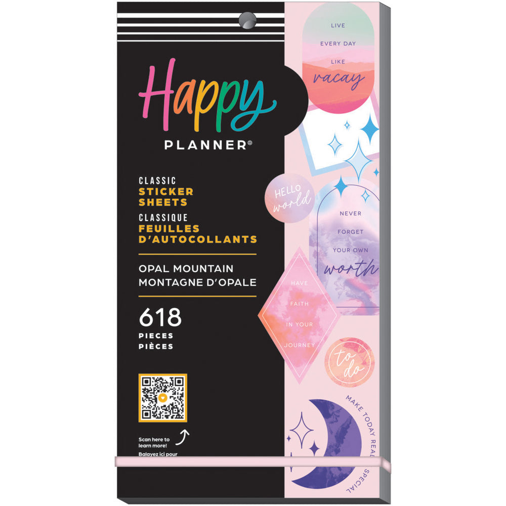 Happy Planner Opal Mountain Classic Sticker Book features celestial imagery and jewel tones artwork. Make plans that work with our special stickers designed specifically for our products.