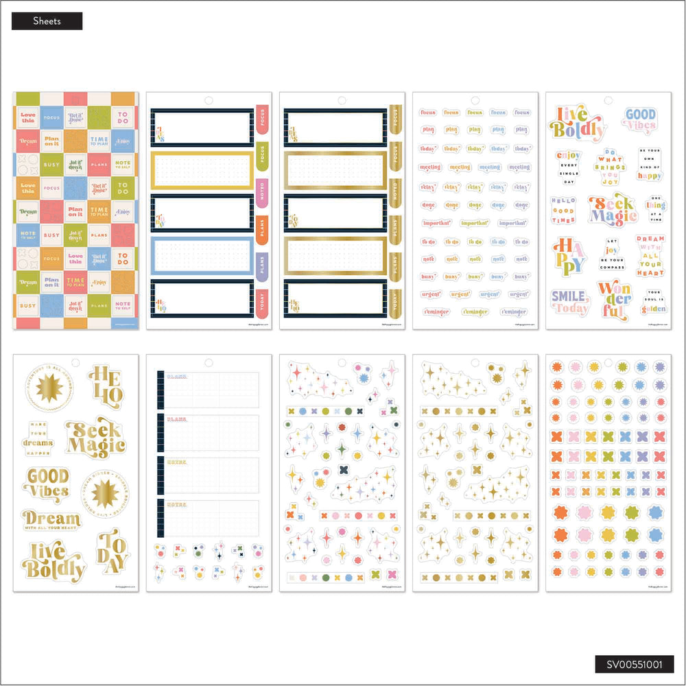 This pack includes 822 vibrant stickers featuring bold patterns and uplifting messages. Perfect for students, teachers, professionals, or anyone who loves to brighten up their planning with a splash of positivity.