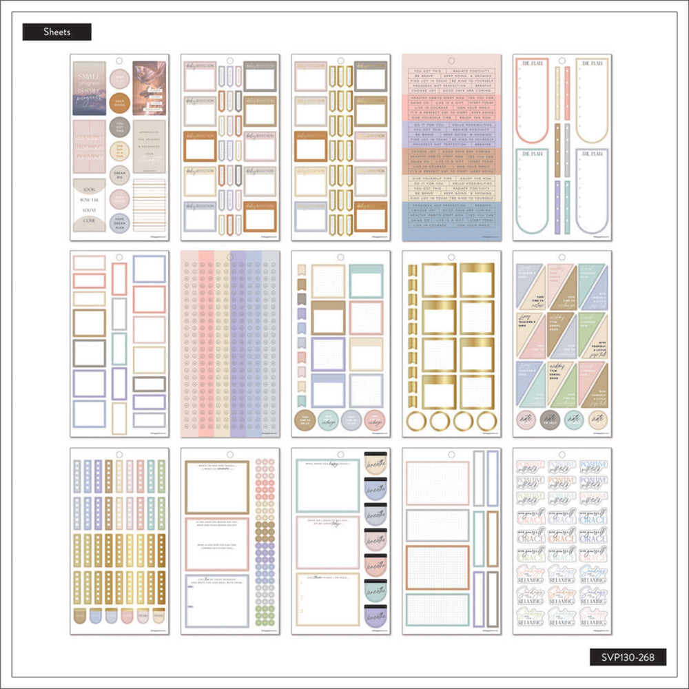 Happy Planner Recovery Classic Sticker Book Value Pack to create helpful spreads with stickers that aid in your recovery journey with daily reflections, blank boxes, and motivational quotes.