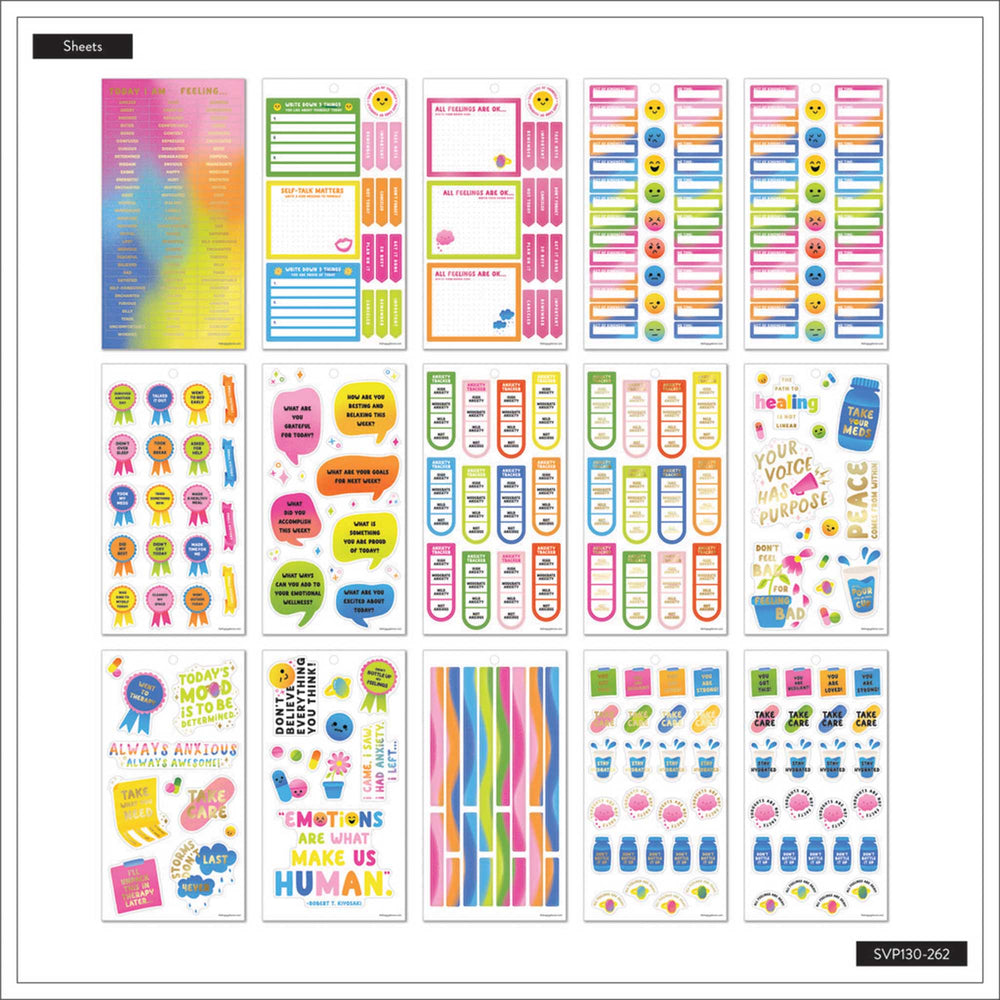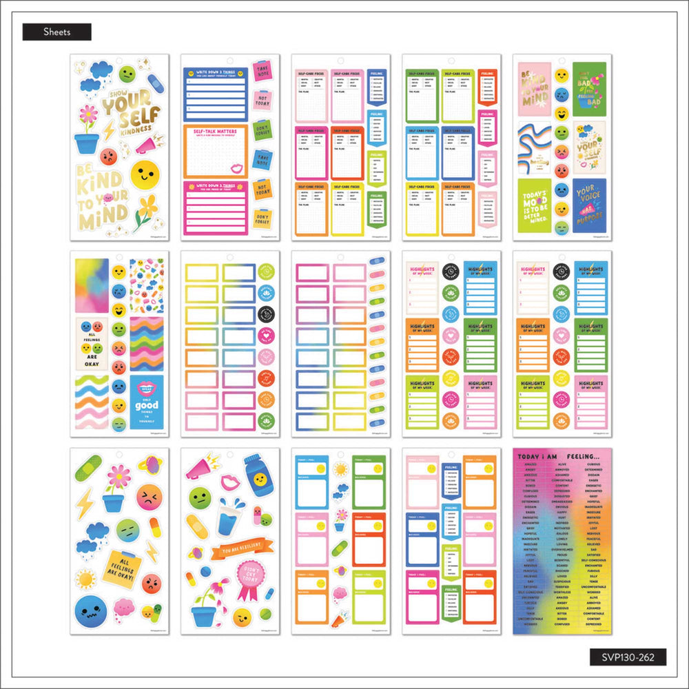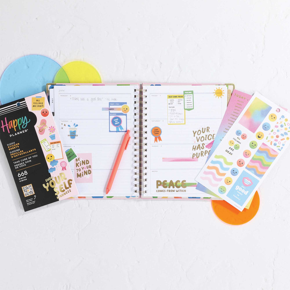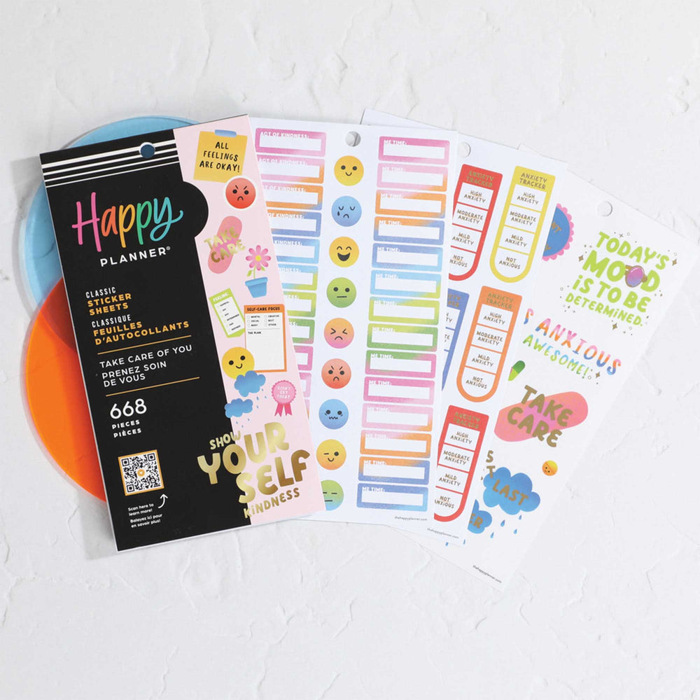 Happy Planner Take Care of You Classic Sticker Book Value Pack to create self-care spreads with reminders to invest in your tools to track your moods.