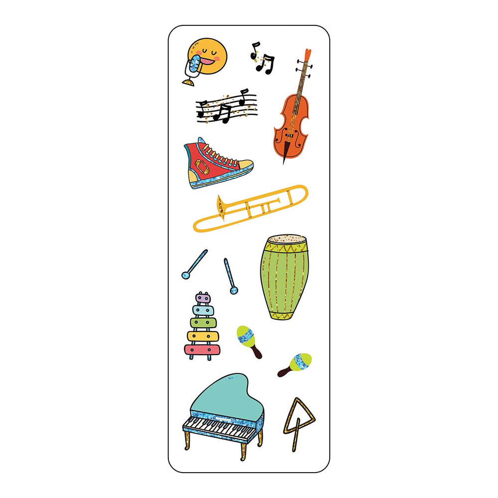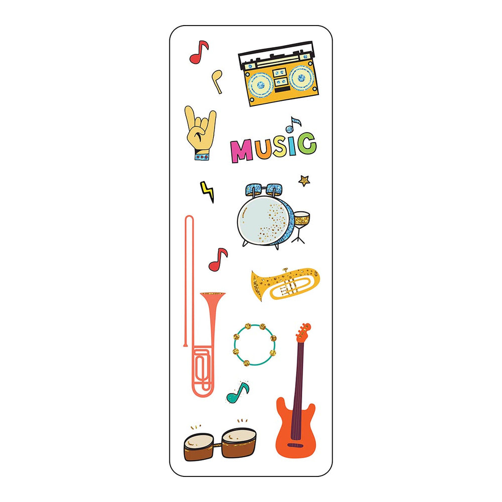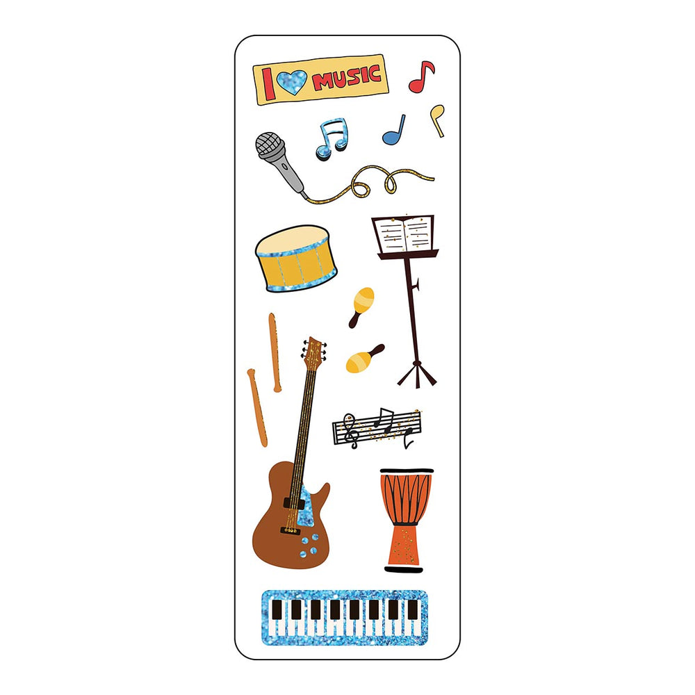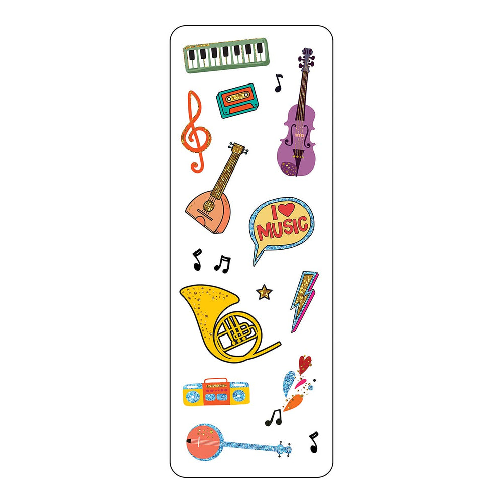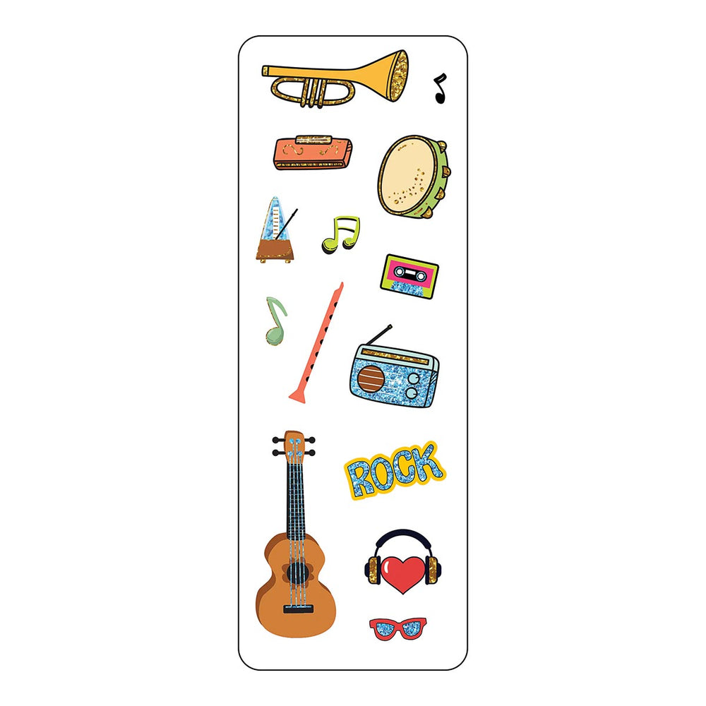 Music Sticker Set Set features drums, guitars, keyboards, musical notes, headphones, microphones, and more -- over 7 dozen different stickers in all