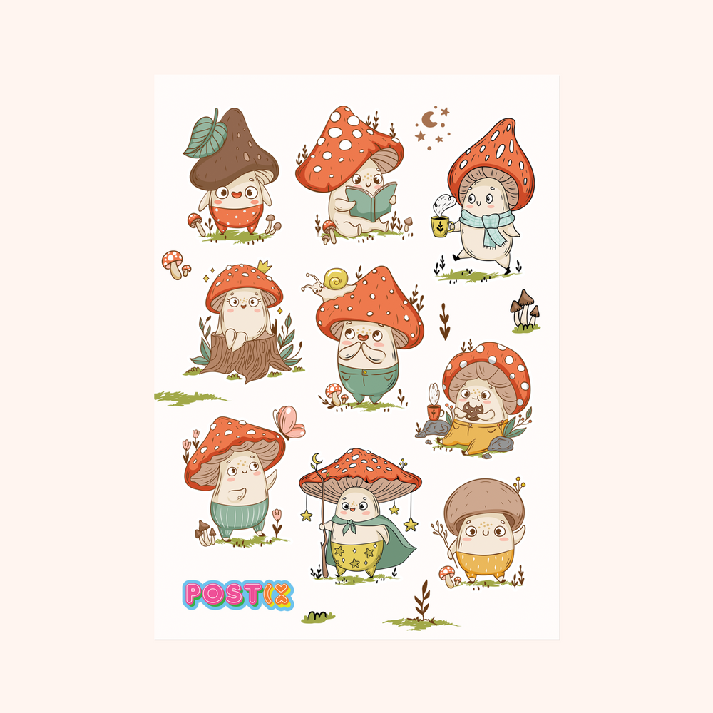 This Magical Mushroom Foraging Life Sticker Sheet is a must-have for nature lovers and dreamers alike. With 9 vibrant stickers featuring adorable mushrooms, woodland creatures, and fantastical scenes.Ā