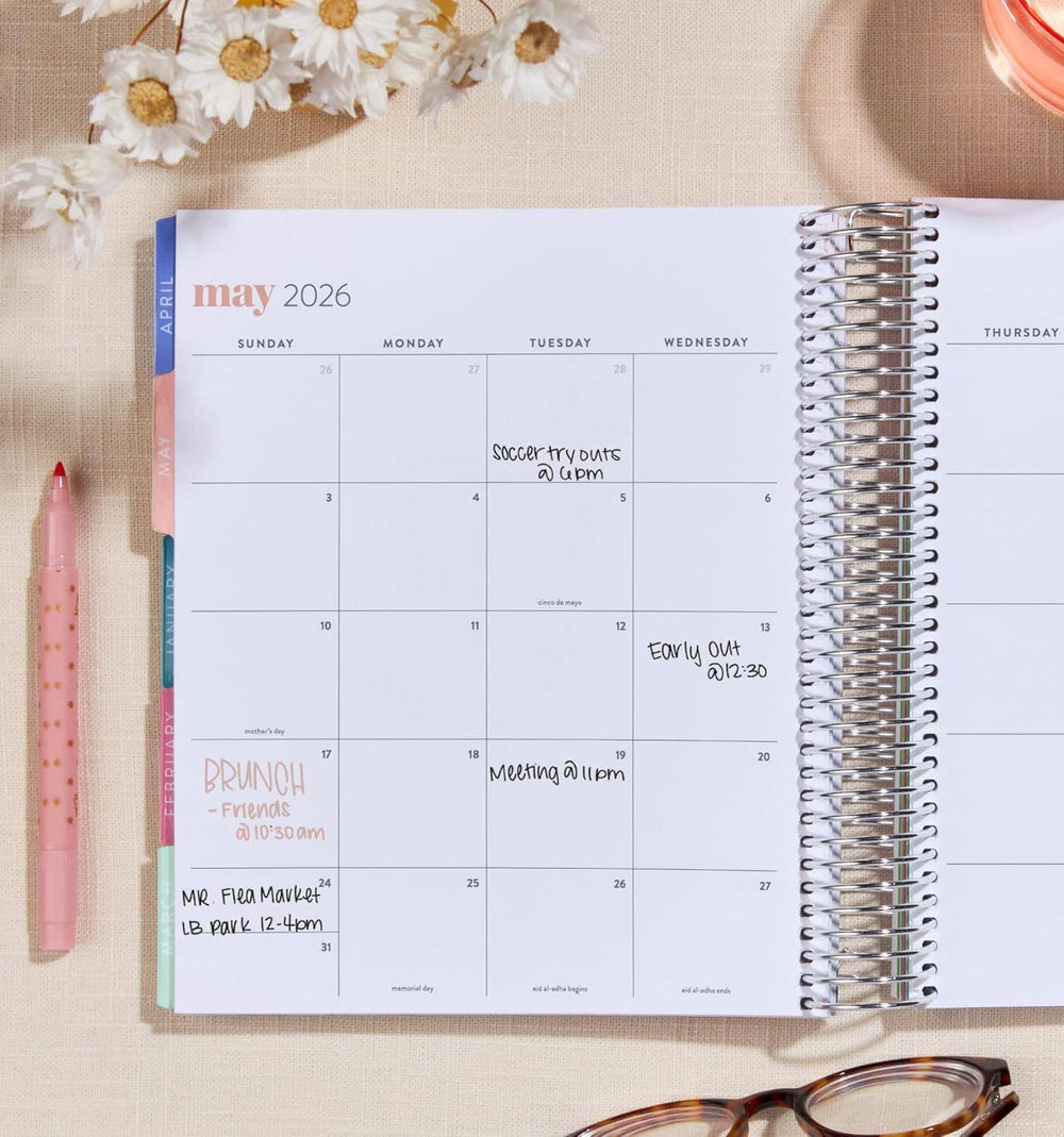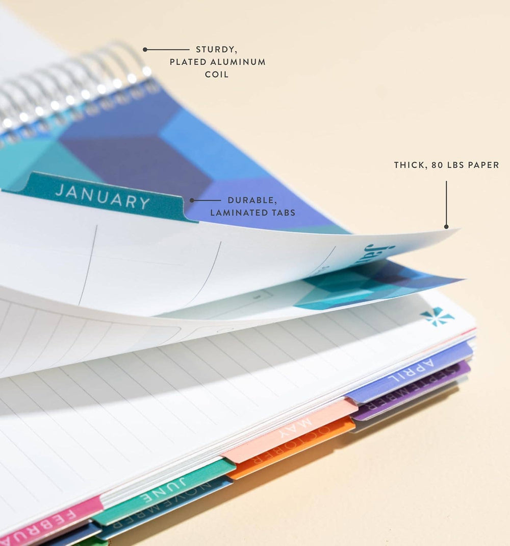 This daily duo planner comes in two separate 6-month planners, offering you 12 months total to enjoy a full year of daily planning without needing to carry all 12 months at once.