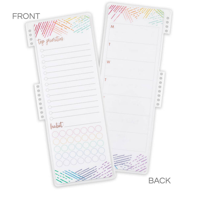 Wet-erase, dry-erase, reusable, and repositionable, this universal Erin Condren Snap-In Half Dashboard with a beautiful Woven Wonder design is a schedule list.