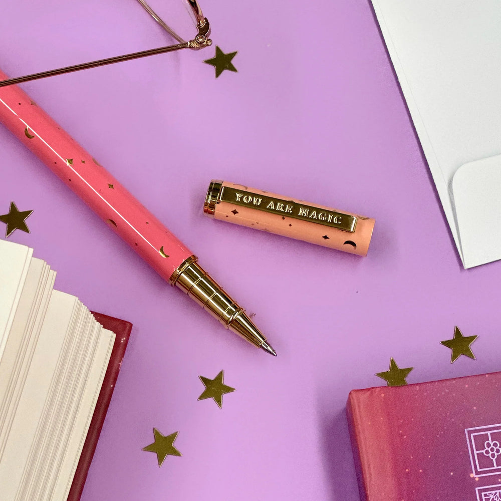 You Are Magic Pen in Pink with a pen tip that glides like scissors on wrapping paper and ink that feels like getting into freshly washed bed sheets with shaved legs, the Quirky pens are notorious for a reason.