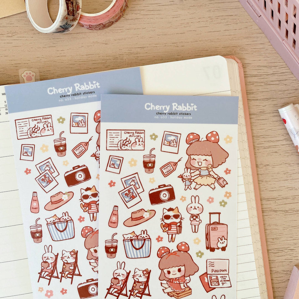 Spice up your holiday or travel planner with Cherry Rabbit's Holiday Mode Washi Stickers! These kiss-cut Holiday stickers feature fun and quirky travel illustrations by Cherriuki on washi paper, perfect for marking your special travel events and holiday activities.