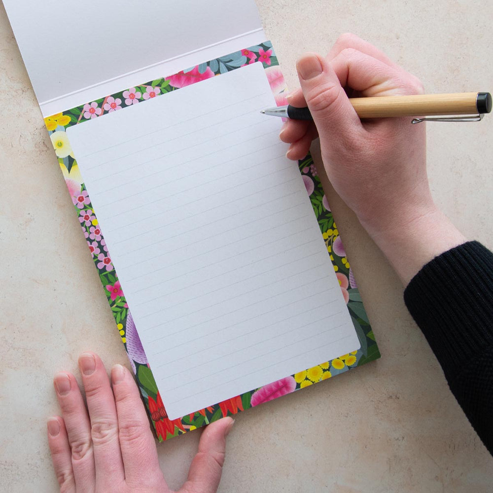 Write lovely letters and pretty up your desk space with this luxurious Earth Greetings A5 Writing Pad - Native Gems featuring artwork by Australian artist Claire Ishino.