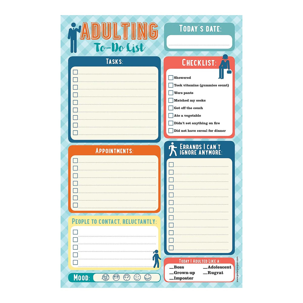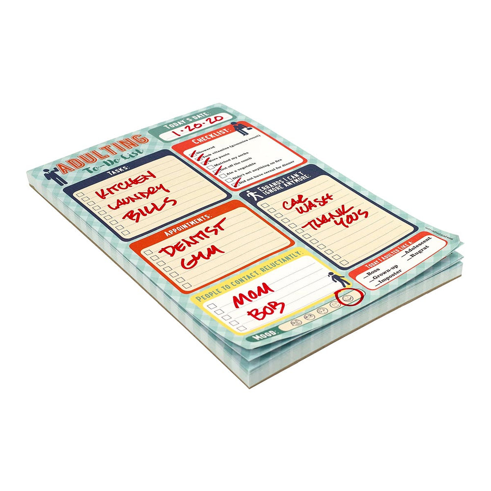 A handy Adulting Note Pad Checklist to keep those #adulting tasks on track! The notepad has a card backing and 60 pages which can be easily torn off after use to reveal a new sheet.