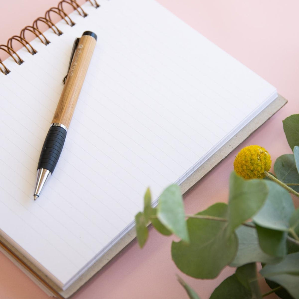 This black Bamboo Ballpoint Pen has a bamboo body and rubber grip for comfort and smooth writing. It is refillable with a 'Cross' or compatible medium-size ballpoint pen cartridge.