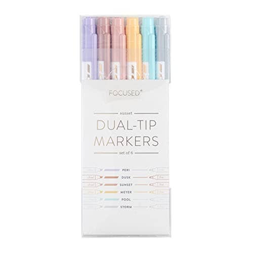 Erin Condren Focused Sunset Dual-Tip Markers give you the flexibility of fine penmanship or larger lines, for artwork, sketches, and everything in between.