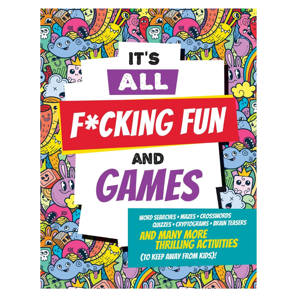 This It's All F*cking Fun and Games adult activity book is packed with fun and edgy puzzles like word searches, crosswords, colouring pages, and mazes.