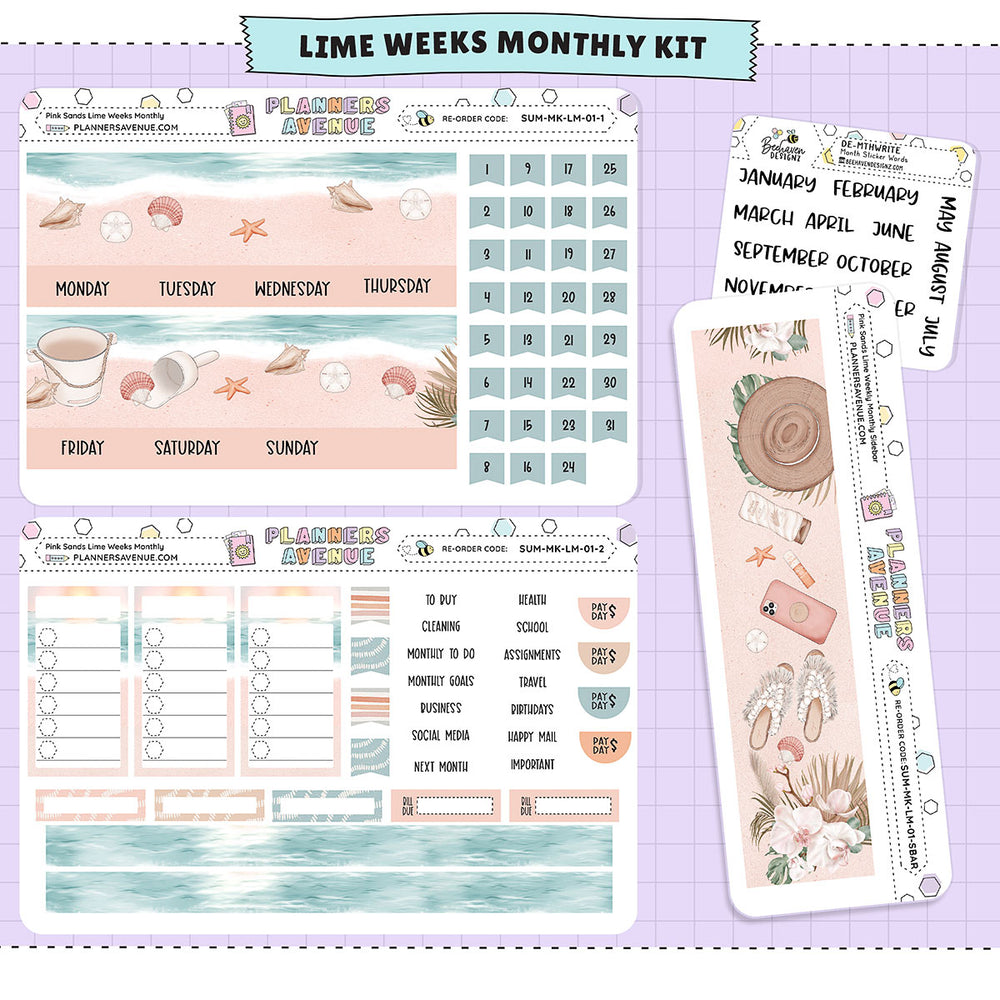 Pink Sands Lime Monthly Sticker Foiled Kit is perfect for decorating the monthly view in your A5 Lime Weekly Planner or other similar planner layouts.