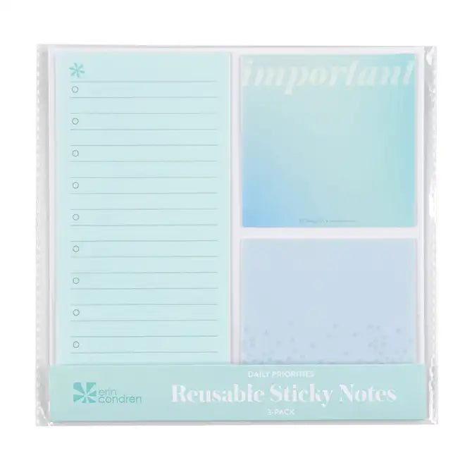 Always have a note handy for sticky situations with the Erin Condren Reusable Daily Priorities Sticky Notes 3-Pack! This reusable set of blue sticky notes truly has infinite possibilities!