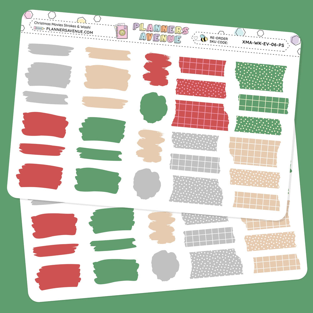 Christmas Movies Brush Stroke + Torn Washi Strips Stickers - Strokes Washi Torn -- Made To Order will ship when stock available