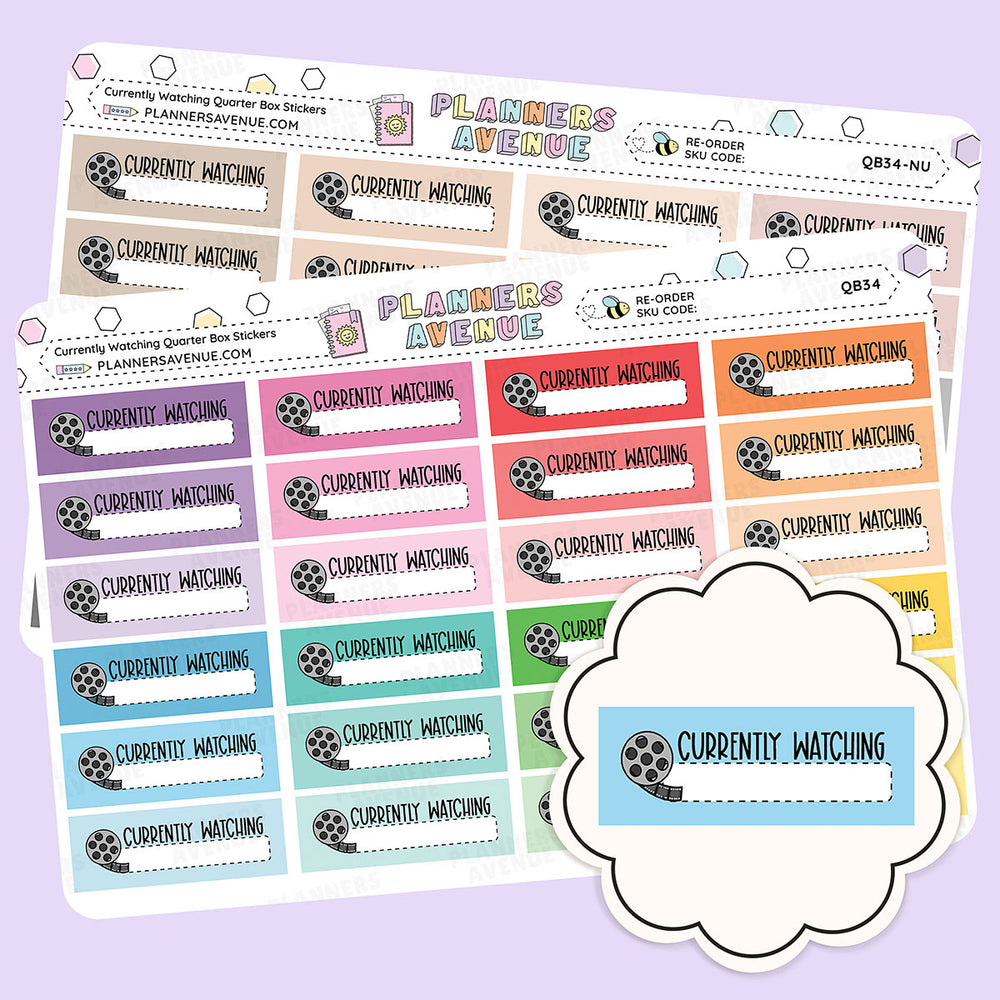 Currently Watching Quarter Box Stickers for your planner, calendar, or anywhere else you desire!!