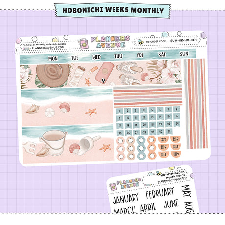 Pink Sands Hobonichi Monthly Sticker Foiled Kit (HOLO GOLD FOIL)