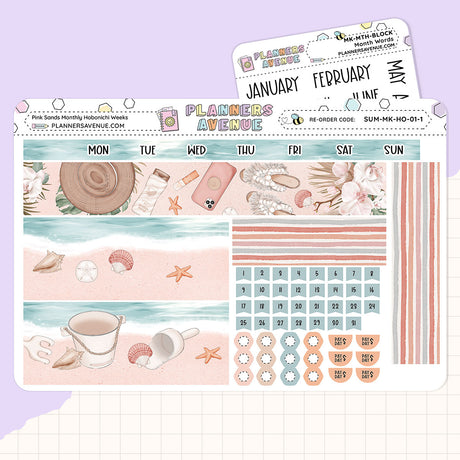 Pink Sands Hobonichi Cousins Monthly Sticker Foiled Kit (HOLO GOLD FOIL)