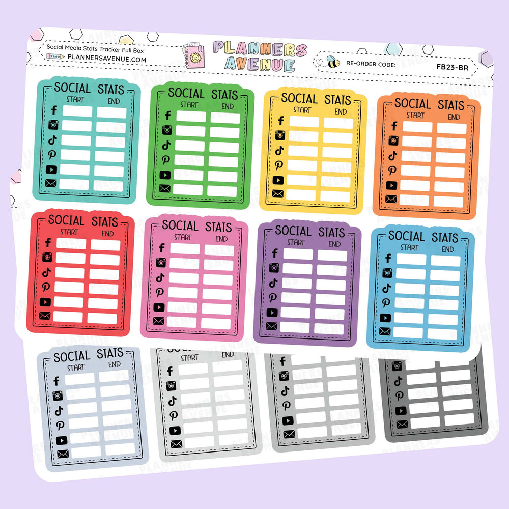 - You will receive 1 sheet of 8 Social Media Stats tracker stickers.