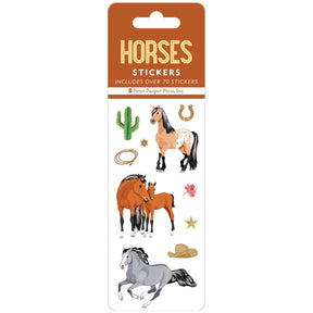 This Horses Sticker Set includes over 70 colourful horse-themed stickers featuring breeds like Appaloosa and Palomino, plus fun accents like cowboy hats and boots. Each sticker shines with holographic foil, adding a playful sparkle to your collection.