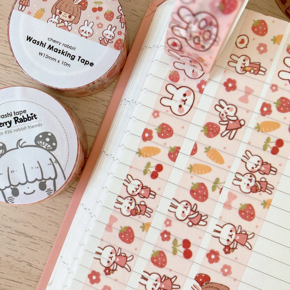 Kawaii Rabbit Friends Washi Tape by Cherry Rabbit -- Made To Order will ship when stock available