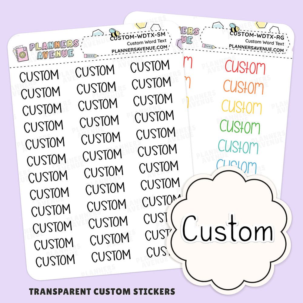 Clear Custom Text Word Planner Stickers | 2 Sizes Single Line