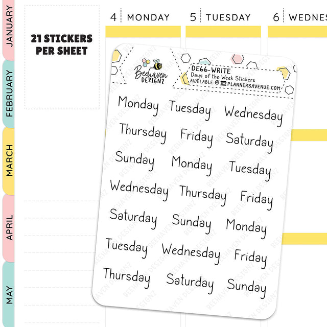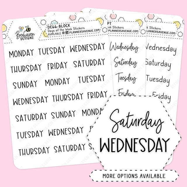 Days of the Week Planner Stickers - Block Text -- Made To Order will ship when stock available