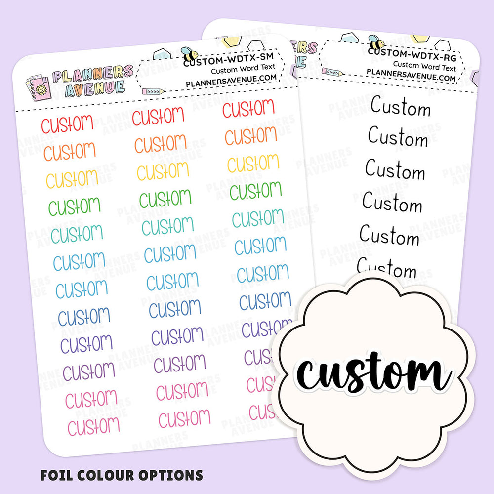Foil Custom Text Word Planner Stickers | 2 Sizes Single Line