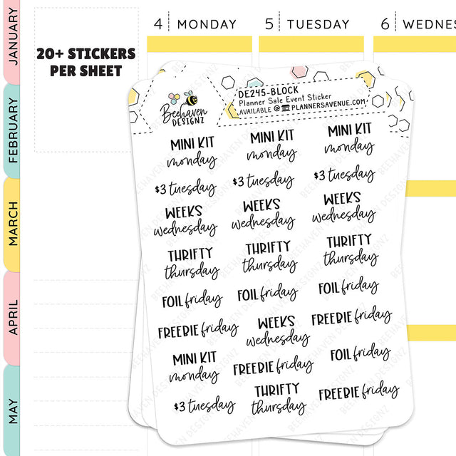 Planner Event Day Stickers - Block Script Text -- Made To Order will ship when stock available