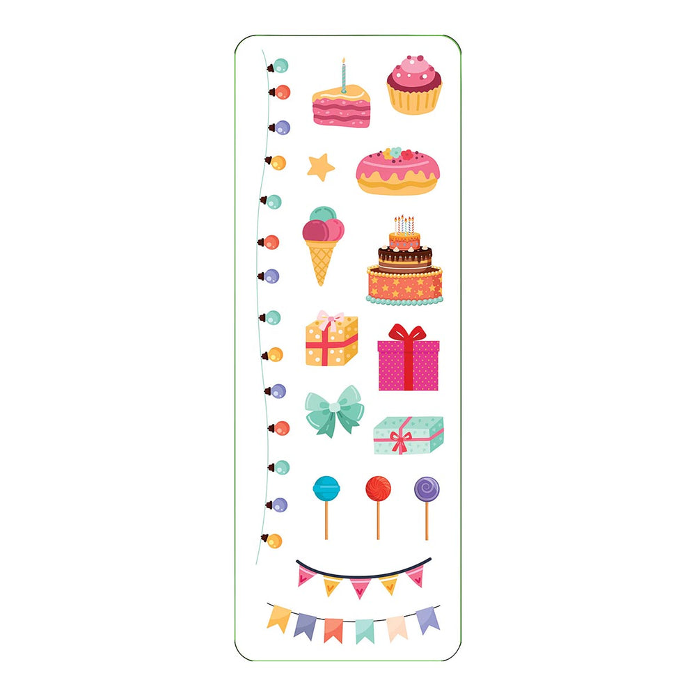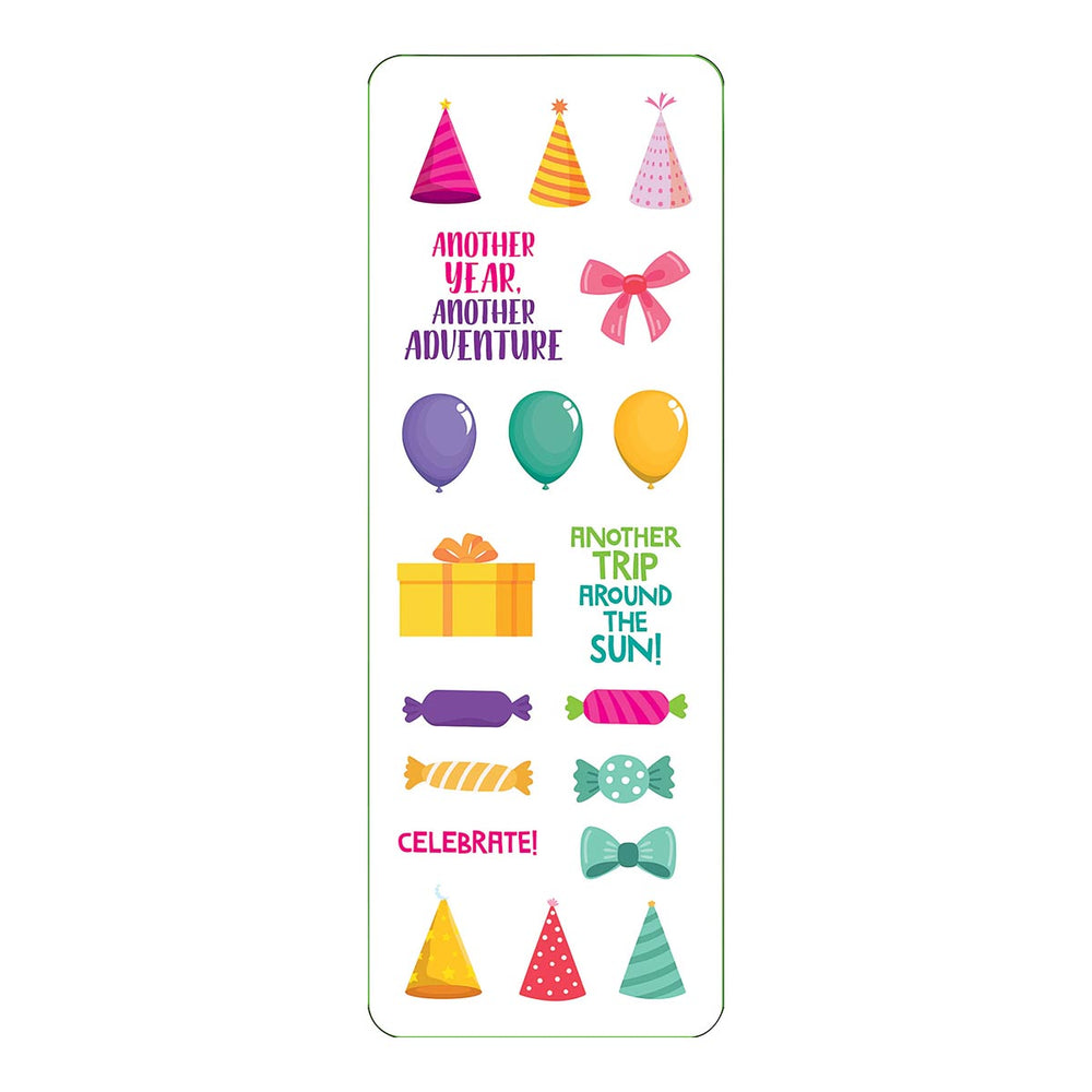 Celebration Birthday Sticker Set includes playful stickers featuring cakes, candles, gifts, and so much more.
