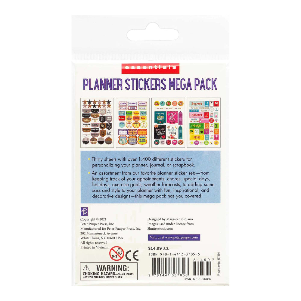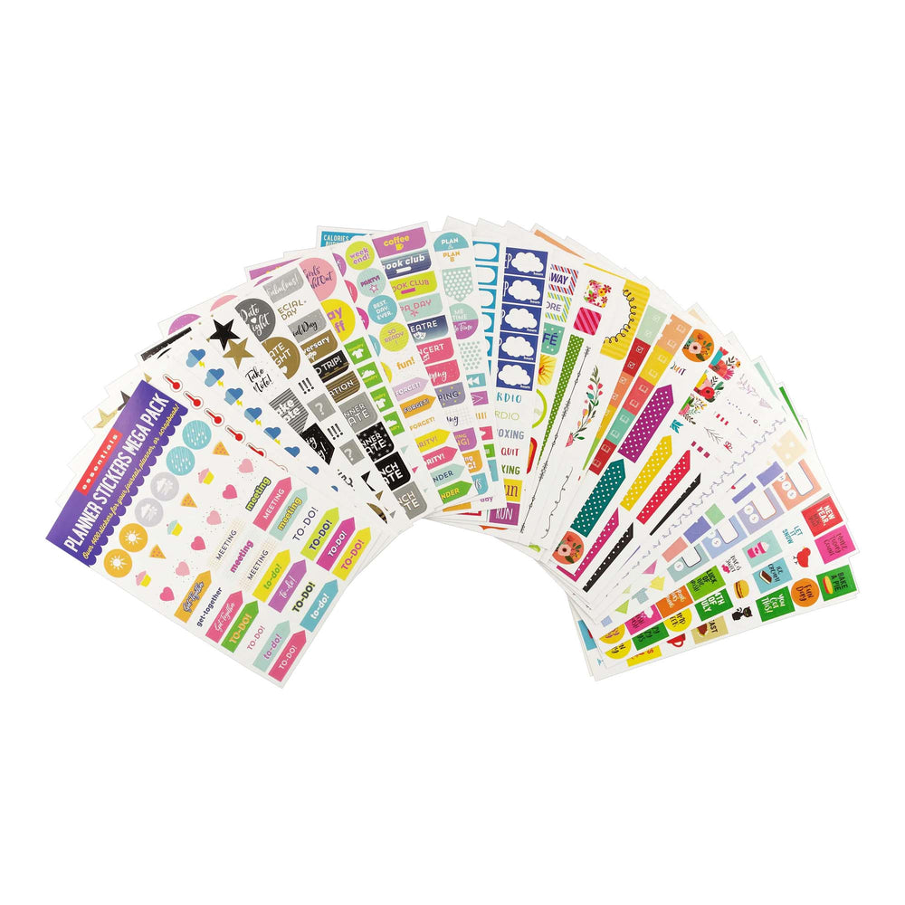 Keep your life plans organised with an Essentials Planner Stickers Mega Pack. This all-in-one set is packed with 30 sheets featuring over 1,400 fashionable stickers for appointments, holidays, goal tracking, and more.