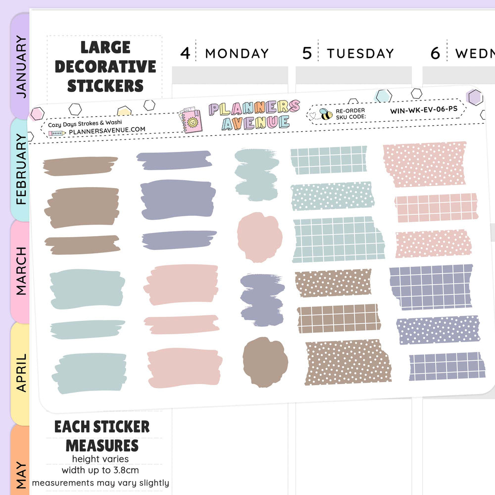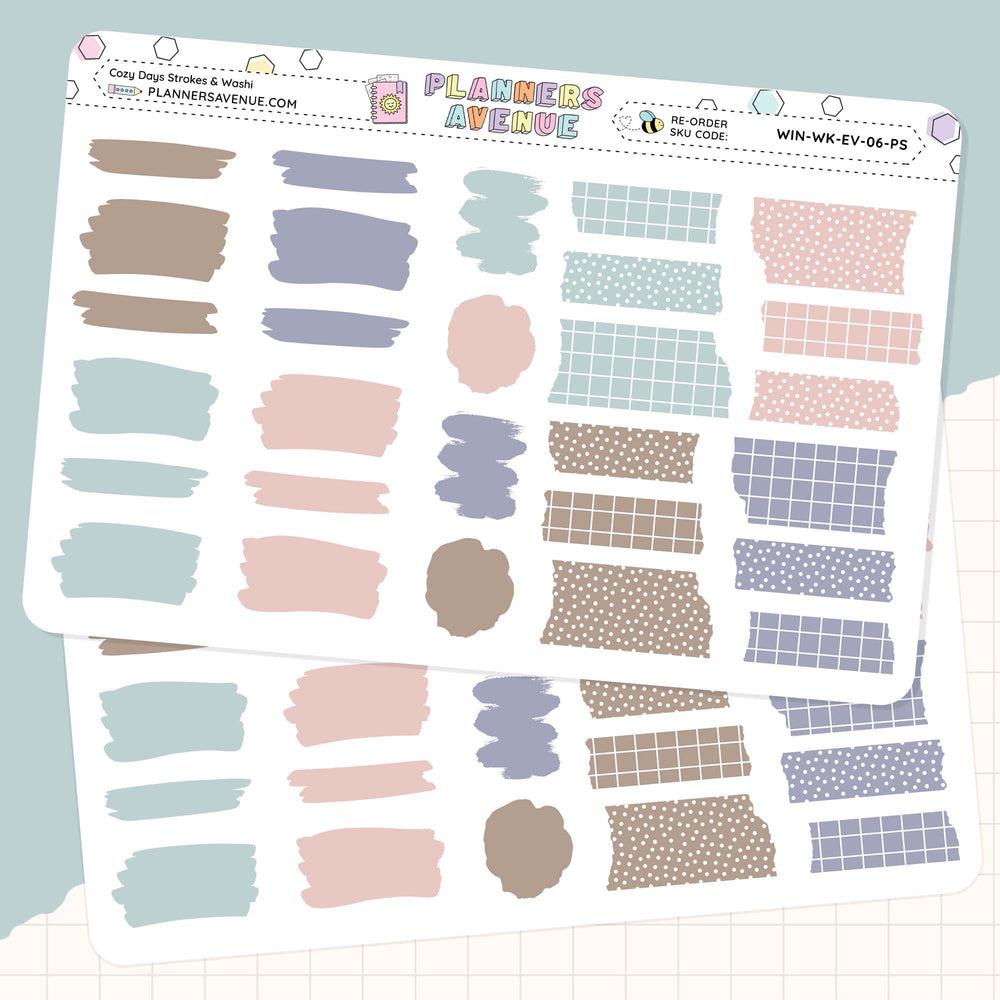 Cozy Days Brush Stroke + Torn Washi Strips Stickers