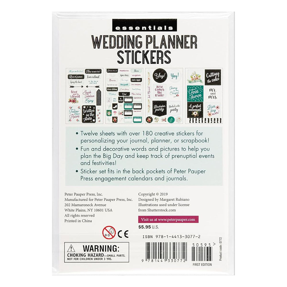 A beautiful set that includes 12 sheets with more than 180 Essentials Wedding Planner Stickers to inspire you and help plan the Big Day. An ideal addition to planners, journals, calendars, scrapbooks, notebooks and much more.