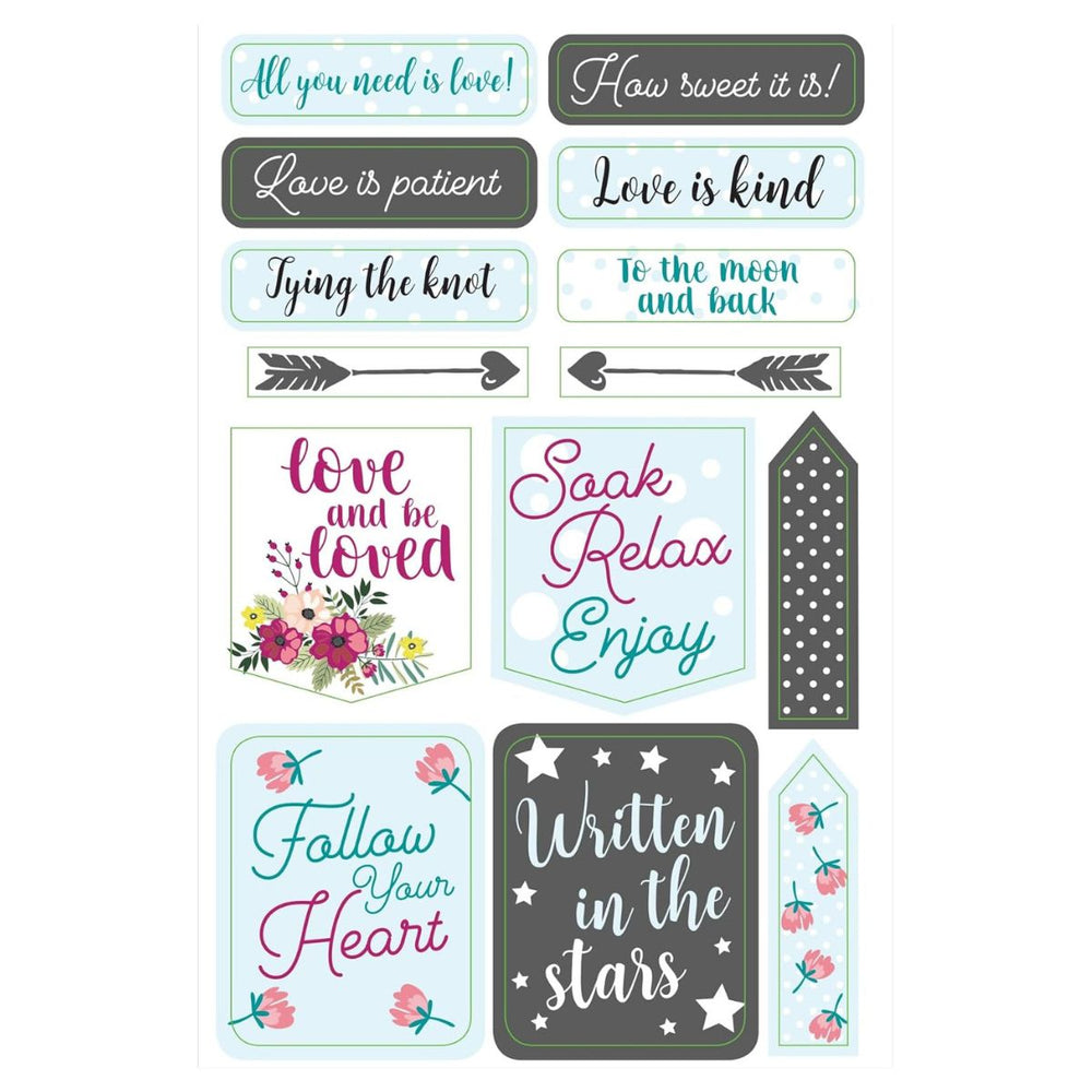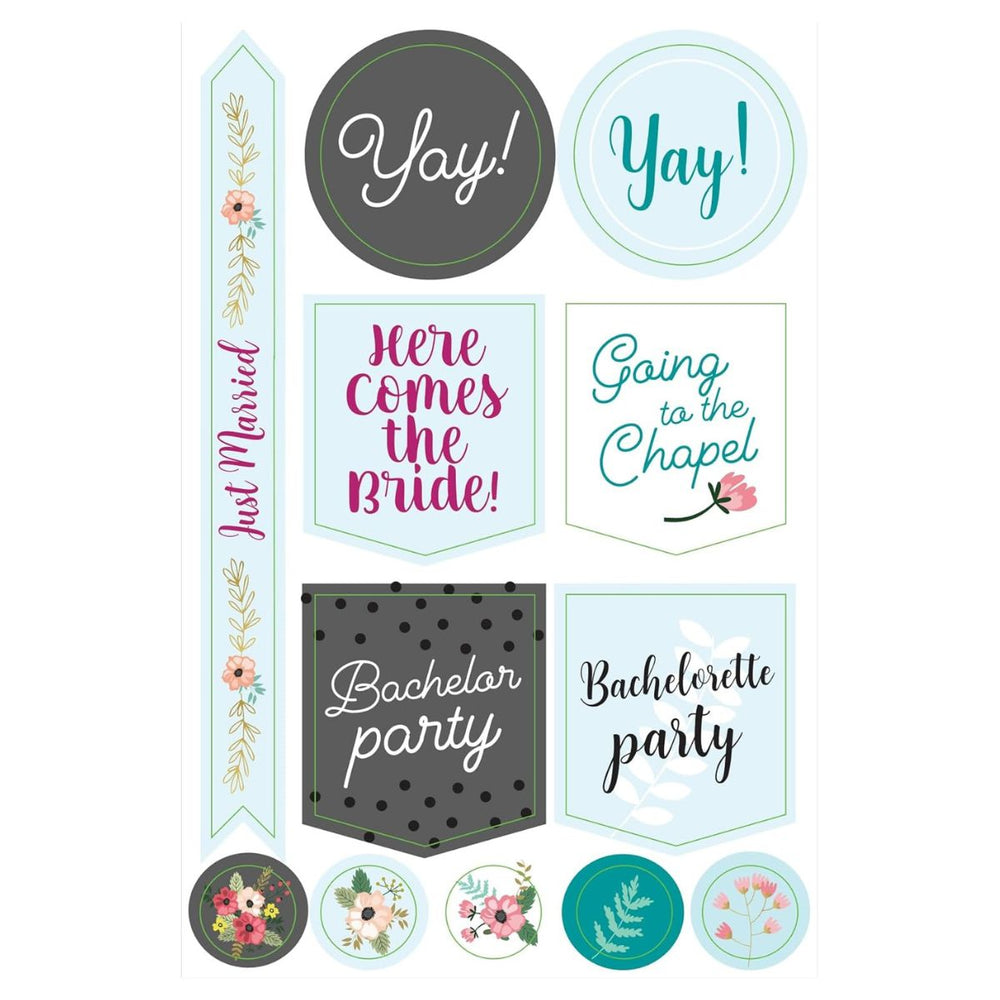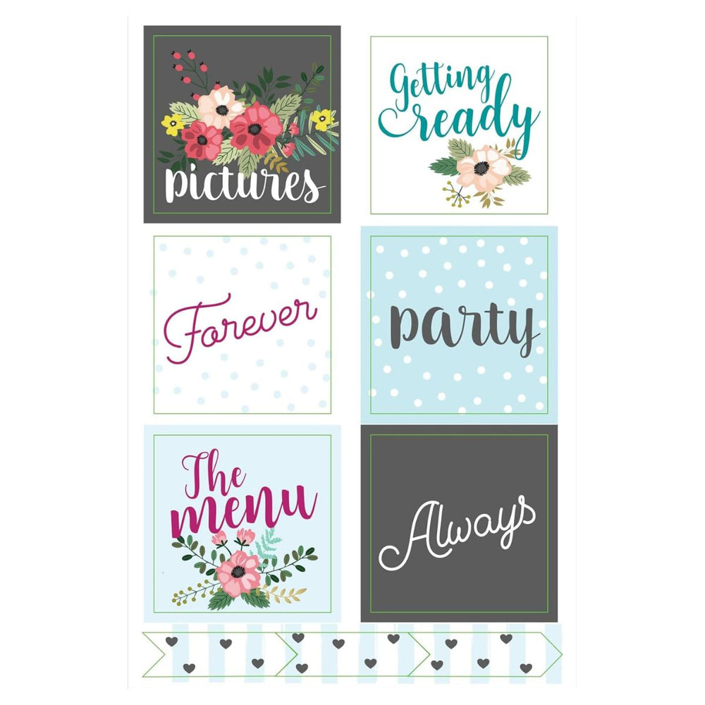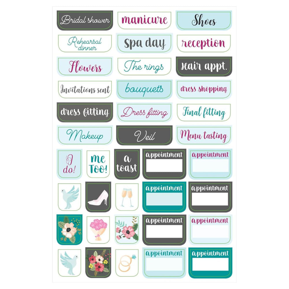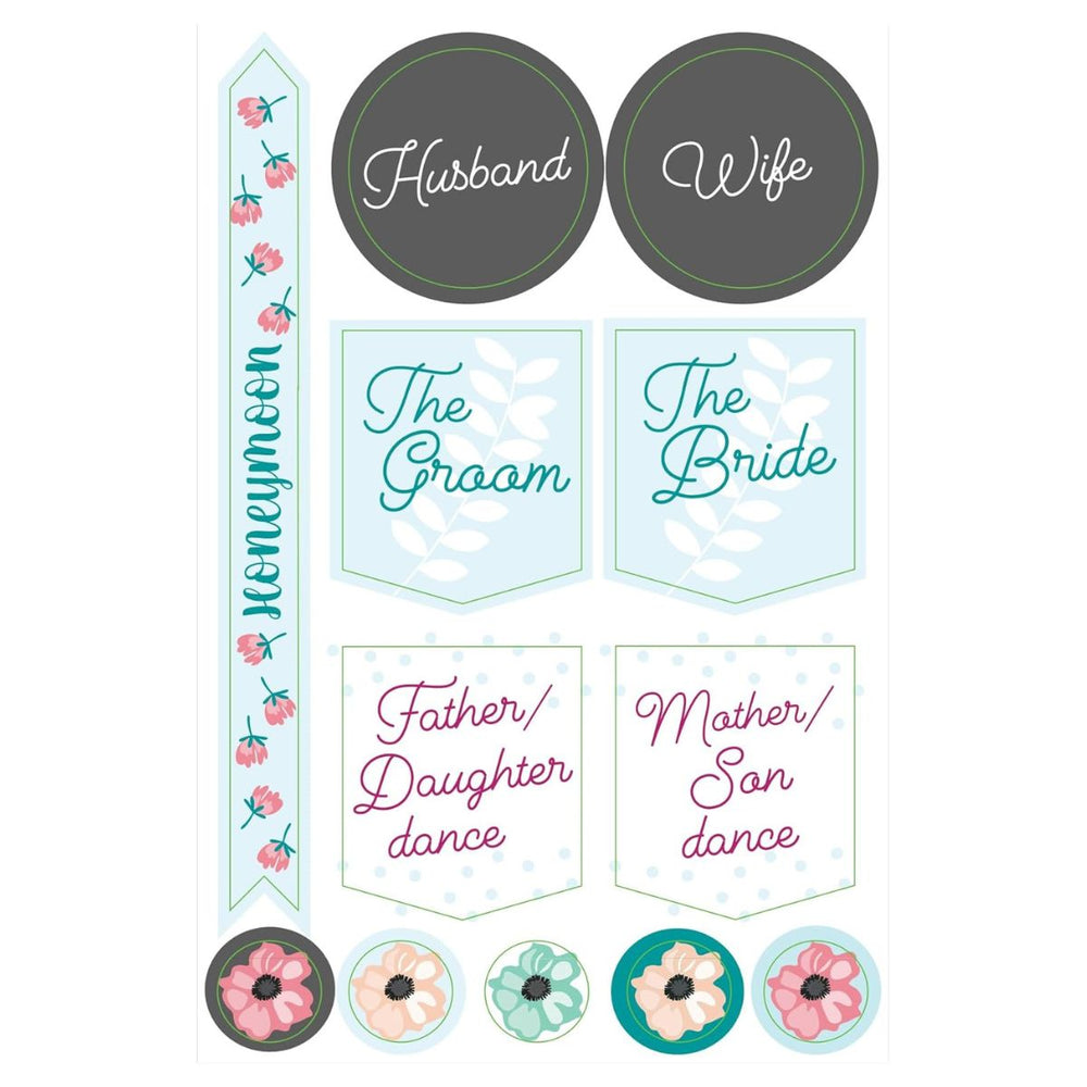 - Types of stickers: "Love is in the Air", "How Sweet it is!", "Invitations Sent", "Final Fitting", Here Comes the Bride", "Cutting the Cake", "Appointment" and more.