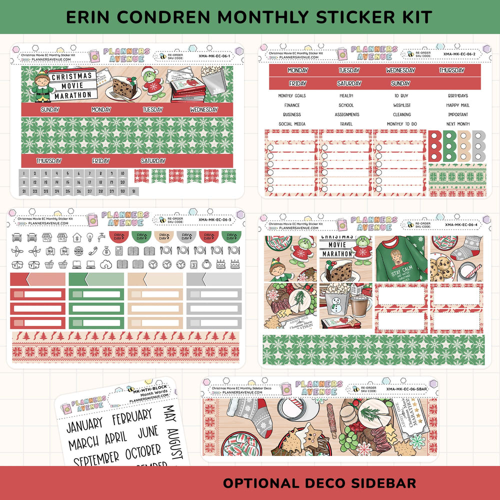 Christmas Movies Erin Condren Monthly Sticker Kit - EC Monthly Kit -- Made To Order will ship when stock available