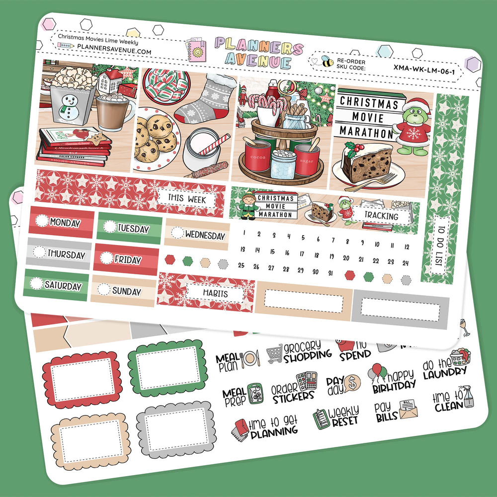 Christmas Movies Lime Weekly Planner Sticker Kit