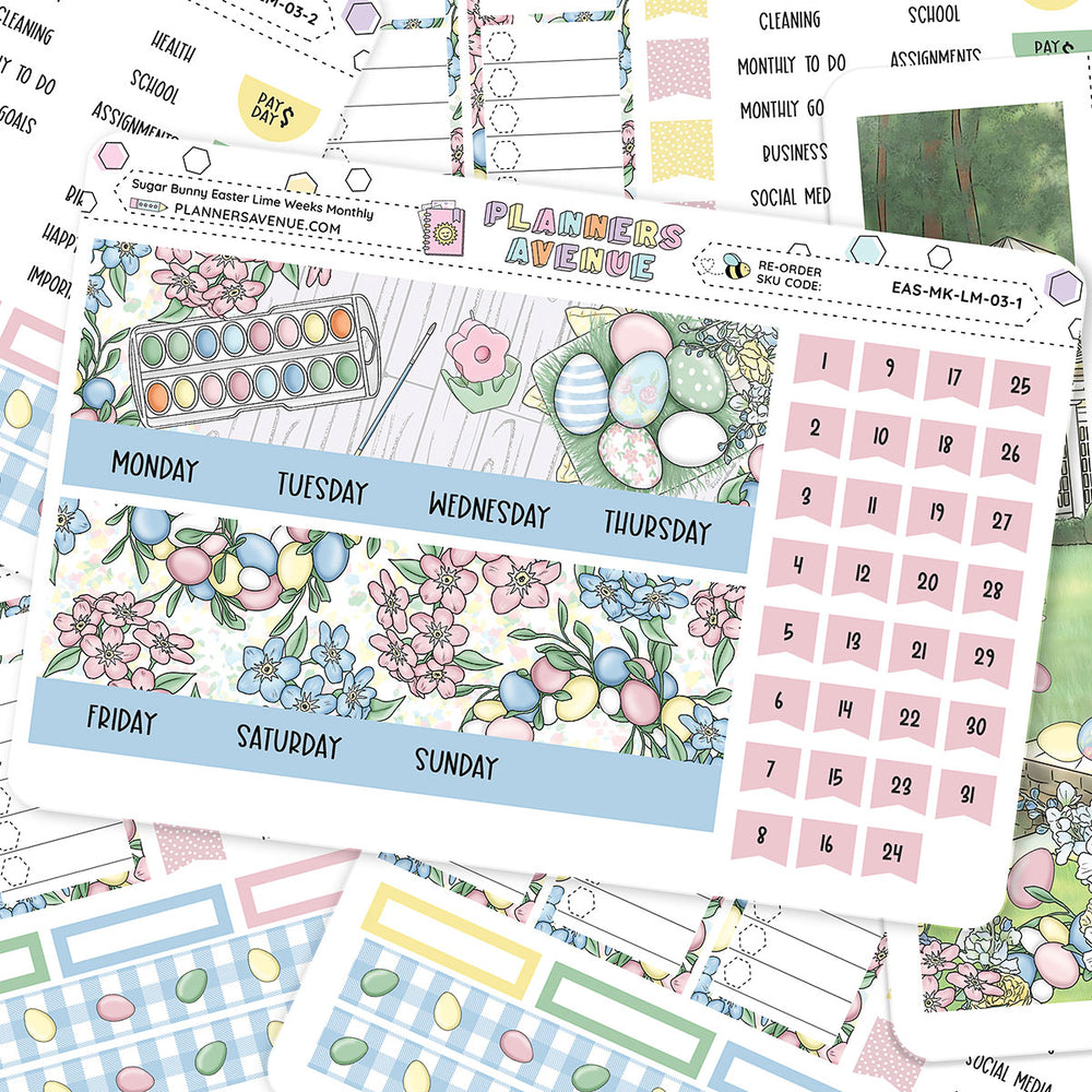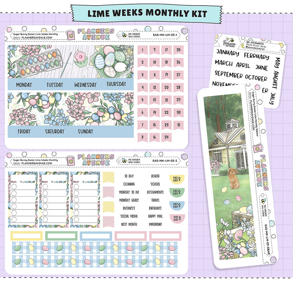Sugar Bunny Lime Monthly Sticker Foiled Kit is perfect for decorating the monthly view in your A5 Lime Weekly Planner or other similar planner layouts.