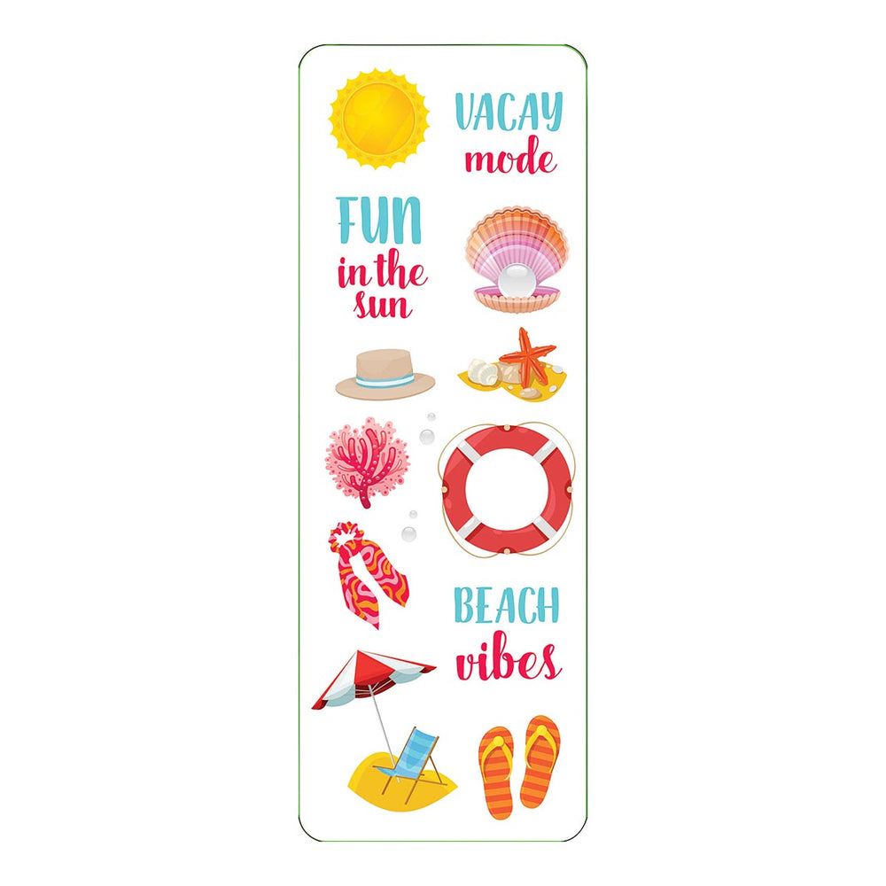 Make a splash with the Beach Sticker Set! This set includes playful stickers featuring flip-flops, seashells, palm trees, and more. Add pops of colour and personality to any surface with these vibrant and fun designs.