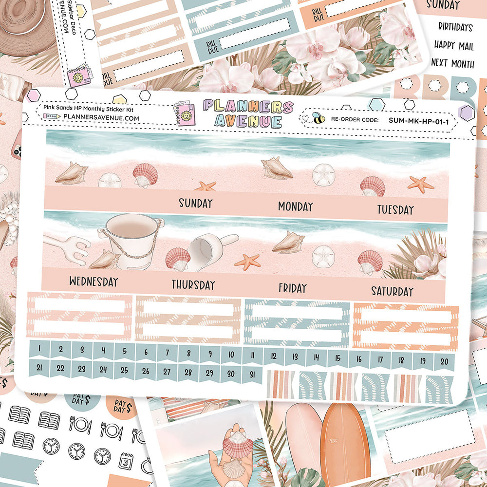 Pink Sands Happy Planner Monthly Sticker Foiled Kit (HOLO GOLD FOIL) - HP Monthly Kit / NO Foil -- Made To Order will ship when stock available
